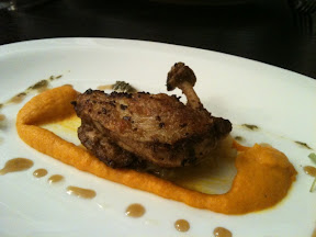The chef must have noticed us seasoning our previous course because he was kind of heavy handed with the salt on this dish. I though the scallop was a little overcooked (very slightly rubbery and stringy instead of smooth and creamy). The crust was nicely browned. The purée to be honest was a bit bland and too dense/cakey - when I first saw it I thought it was a bit of oversteamed egg (Canto style). I was told that perhaps he added a roux to it?