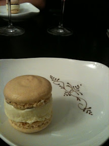 Macaroon (sic) sandwich, filled with choc ganache and toasted coconut ice cream